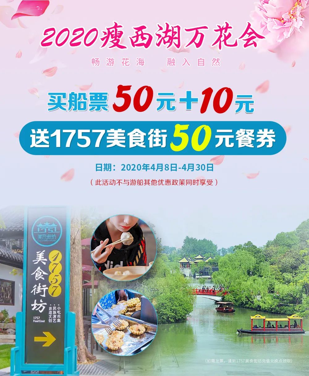 購買價(jià)值100元瘦西湖門票+50元船票+50元1757美食街坊餐券。